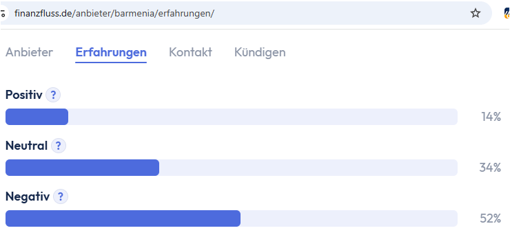 Laut dem renomierten Medium Finanzfluss.de, sind nur 14 % der Bewertenden mit den Barmenia Versicherungen zufrieden: